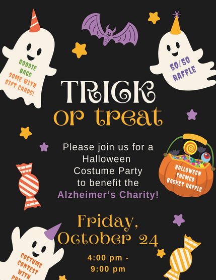 October 19 - Bunco! 4 - 6 pm. $20 pp. (Benefits the Cancer Fund)